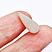 这枚水滴形素面欧泊,以奶白色为底色,呈半透明状,朦胧中闪烁着红、橙、绿等多色变彩。台面被大片闪耀的色斑彩片均匀覆盖,荧光绿和淡紫色交错,美艳无双。整体变彩明显,在点光源下绽放橙红色火焰,耀眼出众。而且转动宝石,彩片的颜色、形状都随之发生变化,似梦境中绚烂缤纷的国度。如此规整优异的水滴形,适合作为吊坠镶嵌。